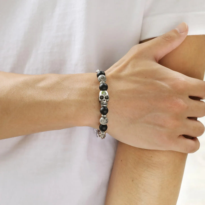Features : Stainless Steel Skull Bead Bracelet Comes with an elegantly designed and sturdy gift box that is ideal for storing and presenting jewellery.
