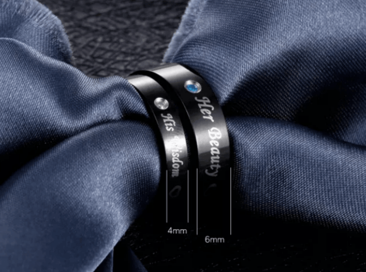 Steel Black Love Wedding Engagement Ring for Couple